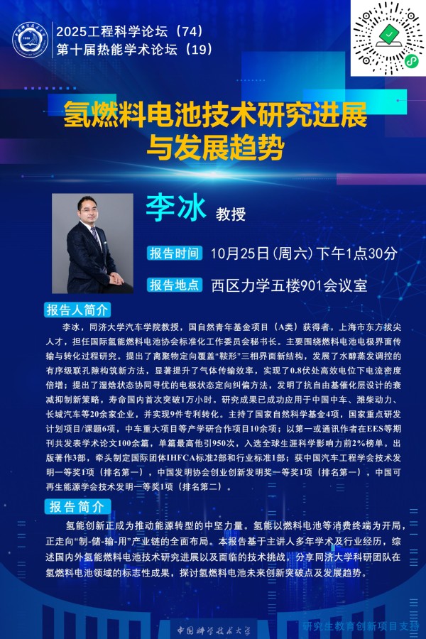 2025工程科学论坛(74)第十届热能学术论坛(19)氢燃料电池技术研究进展与发展趋势