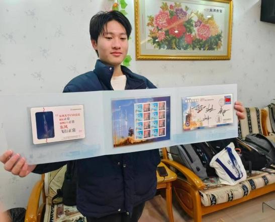 10月31日夜,东风航天城问天阁人潮涌动。20时48分,张陆、武飞、张洪章三名航天员阔步而来。掌声、欢呼声、国旗挥动的猎猎声交织成一首激昂的出征曲,直冲夜空。欢送仪式落幕后,师生们奔赴距塔架仅1.5公里的观礼区。23时44分,倒计时的铿锵声与心跳同频——“五、四、三、二、一,点火!”炽白龙炎骤然喷薄,刺破戈壁寂静。十余秒后,光柱没入苍穹,唯余渐远的呼啸与人群排山倒海的欢呼。现场指挥中心随后传来消息,本次神舟二十一号载人飞船发射任务取得圆满成功。值得一提的是,酒泉卫星发射中心为本次前来的学生代表赠送了宇航员签名的纪念册一份,勉励同学们学好专业知识报效祖国,承担起“航天报国、科技强国”的时代使命。