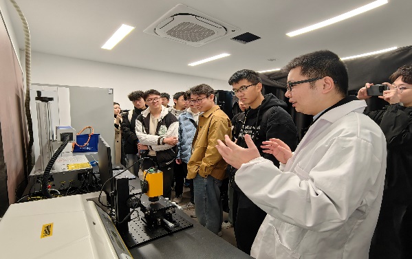 在苏州高等研究院,副院长倪瑞为师生们系统介绍了研究院的建设历程与发展规划。同学们参观了科技展厅与前沿交叉光电创新中心实验室,通过傅里叶变换红外光谱仪、热像仪等先进设备的现场演示,深入了解相关设备的设计原理与运行特点,近距离感受到科研前沿的实践魅力。