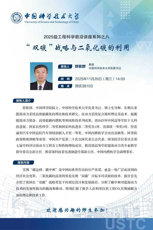 2025级工程科学前沿讲座系列之八 “双碳”战略与二氧化碳的利益