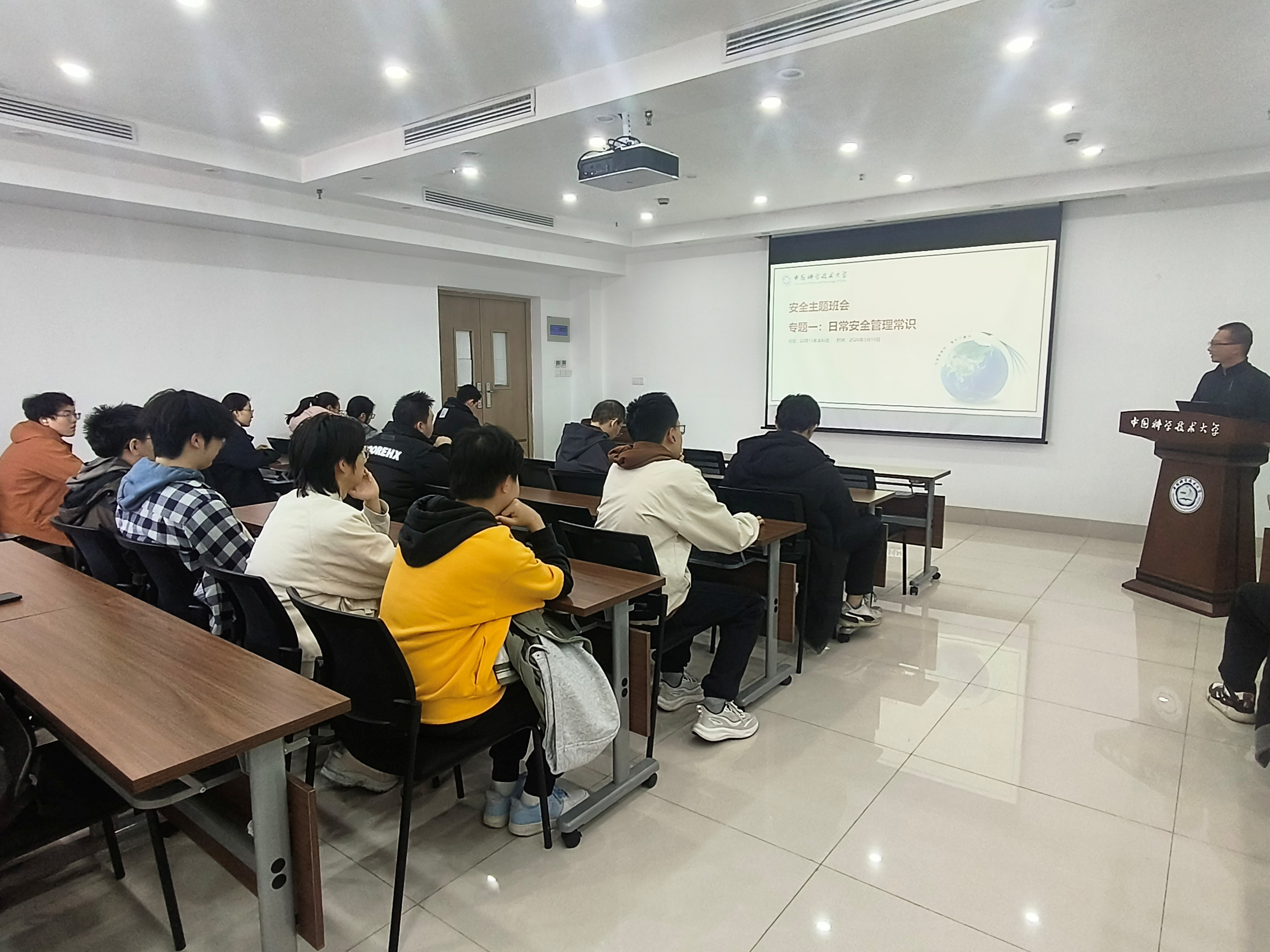 随后,安全委员刘弈君围绕安全教育展开系统讲解。他从日常安全管理常识入手,提醒同学们注意宿舍用电、防火防盗等生活细节;进而深入阐述消防安全知识,包括火灾预防、应急逃生等实用技能;在交通安全方面,他结合真实案例,强调遵守交通规则的重要性;最后,针对日益频发的电信网络诈骗,刘弈君同学详细分享了识别与防范策略,提升同学们的安全意识。通过这四个维度的全面教育,班级安全防线得到进一步巩固,为平安校园生活保驾护航。
