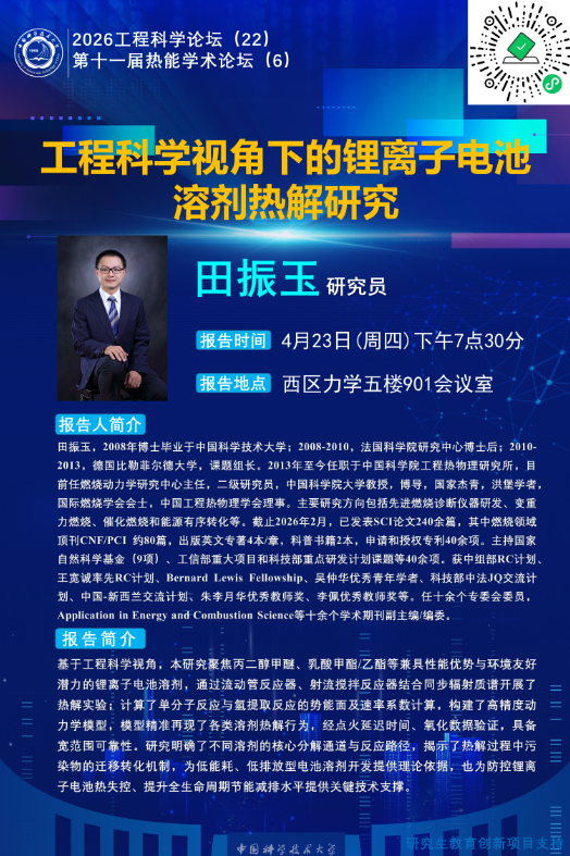 2026工程科学论坛(22)第十一届热能学术论坛(6)工程科学视角下的锂离子电池溶剂热解研究