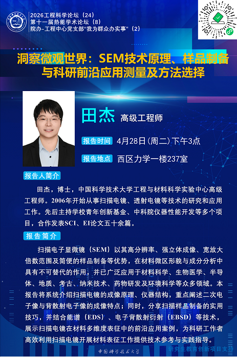 2026工程科学论坛(24)第十一届热能学术论坛(8)洞察微观世界:SEM技术原理、样品制备与科研前沿应用测量及方法选择